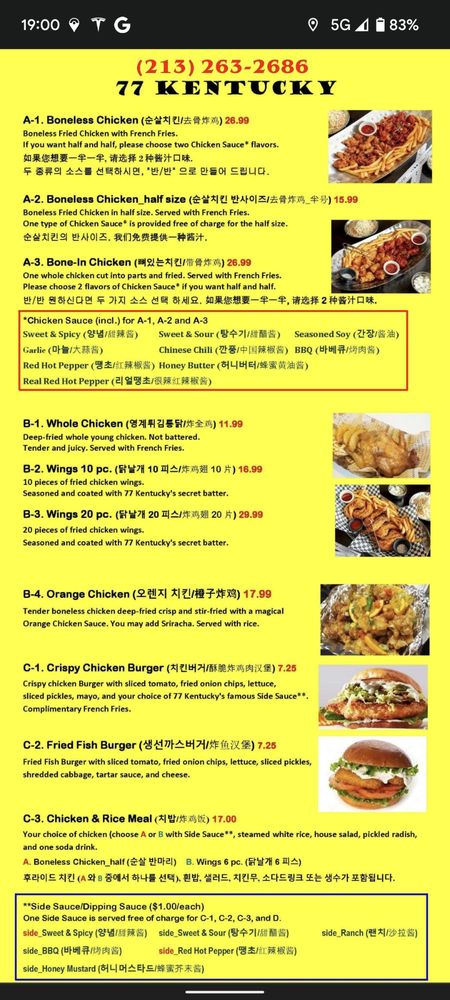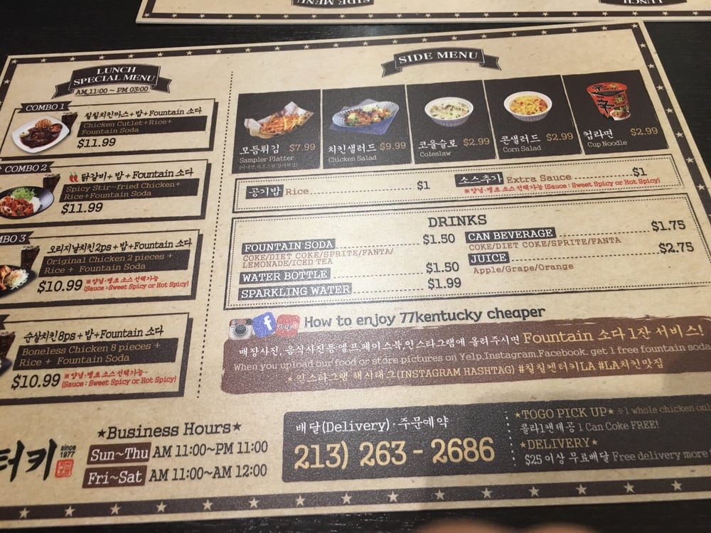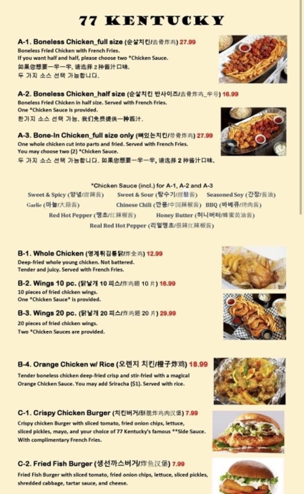 Introducing 77 Kentucky Chicken, a delightful Korean chicken wing destination located at 698 Vermont Ave #101 in Los Angeles. This casual yet trendy eatery is perfect for lunch, dinner, or late-night cravings, offering a variety of delicious options for both meat lovers and vegetarians alike.